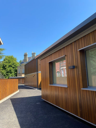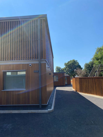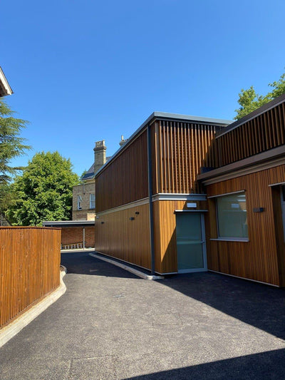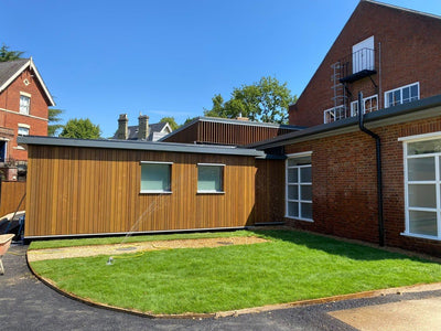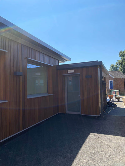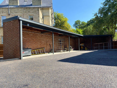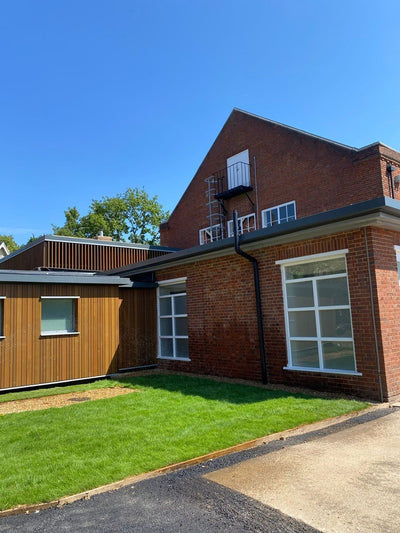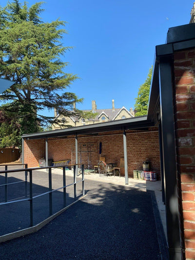 Fire safety was a central consideration for this project, particularly given the educational setting. The gutter and downpipe system supplied by Online Metal Store Ltd carried an A2-s1,d0 fire rating, confirming that the materials used are non-combustible and produce minimal smoke and no burning droplets in the event of fire. This level of fire resistance provides added peace of mind and aligns with current UK regulations for public-sector and educational buildings.