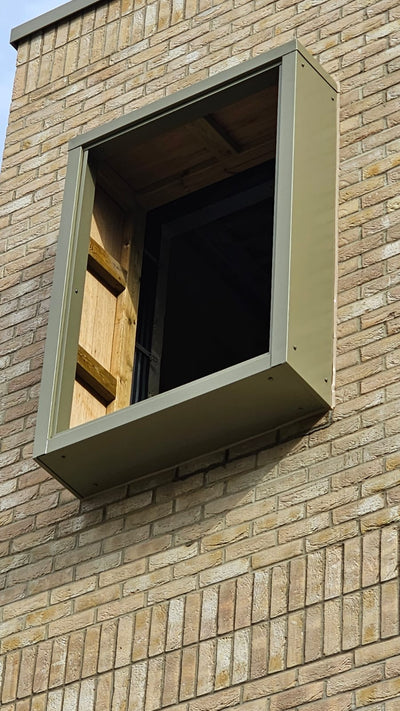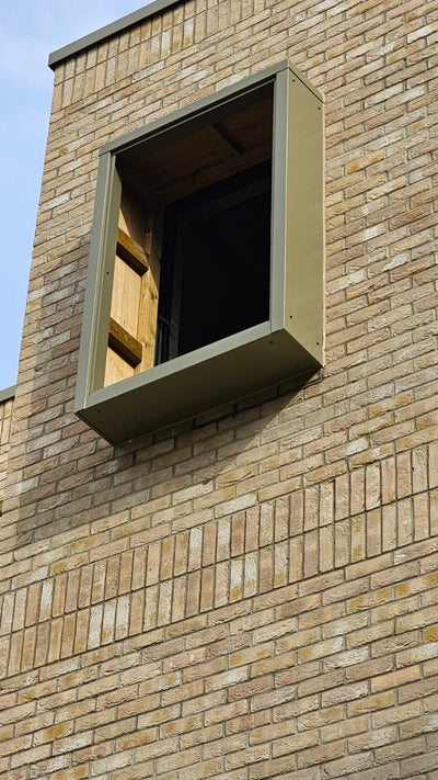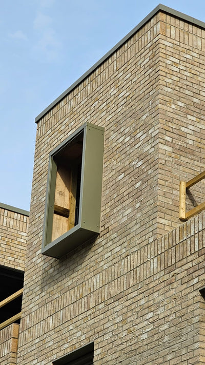 The system chosen for this project was a set of twelve 2mm aluminium window surrounds, each finished in RAL 7002 Olive Grey. This elegant, understated tone offered a modern yet timeless look that complemented the building’s facade. The surrounds were powder coated for enhanced weather resistance and long-term durability, ensuring the system could withstand the elements while maintaining its aesthetic appeal. Every unit was tailored to fit precise site measurements, ensuring a seamless integration with the existing windows and external finishes.