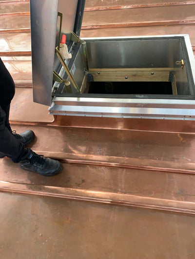 For this project, the 0.7mm KME Copper Batten Seam System was carefully chosen for its outstanding durability, natural weathering properties, and architectural sophistication. Known for developing a rich patina over time, the copper system provided a timeless finish while also meeting the practical needs of the urban environment. The system was coated to meet aesthetic specifications and integrated with precision to ensure watertight performance, minimal maintenance, and long-term resilience.